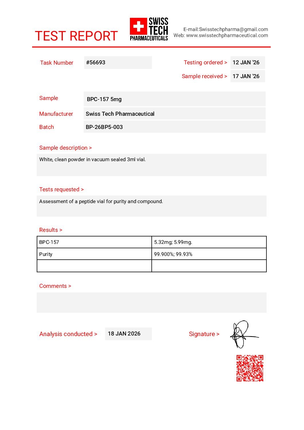 Manufactured with precision and adhering to stringent laboratory standards, every vial of BPC-157 ensures consistency and performance in every application. The peptide undergoes rigorous testing to guarantee purity and integrity, making it a reliable option for controlled scientific experiments. Designed for those who demand excellence, this peptide empowers you to push the boundaries of your research with confidence.